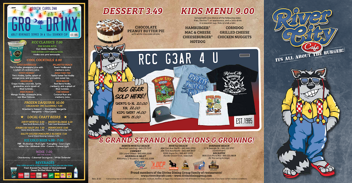 Nestled at 11 N Seaside Dr in Surfside Beach, SC, River City Cafe is a beloved destination for beachgoers and food lovers alike. Known for its vibrant menu, it offers a variety of hearty dishes that won't disappoint. Start with their signature appetizer, the Blooming Onion, a hand-cut masterpiece served with tangy petal sauce, or indulge in the world-famous onion rings.